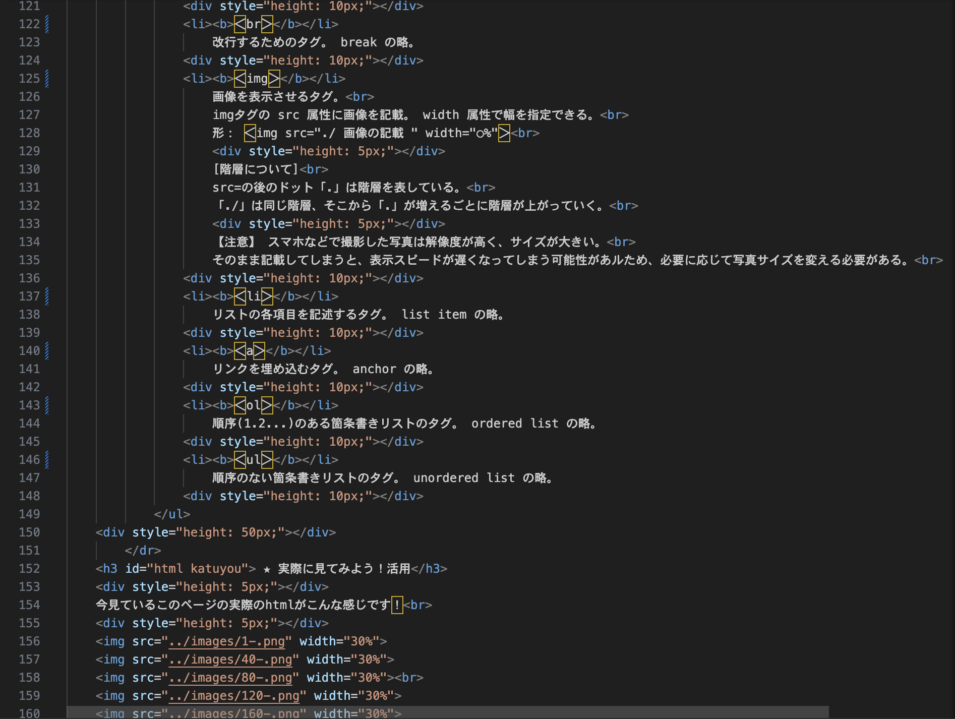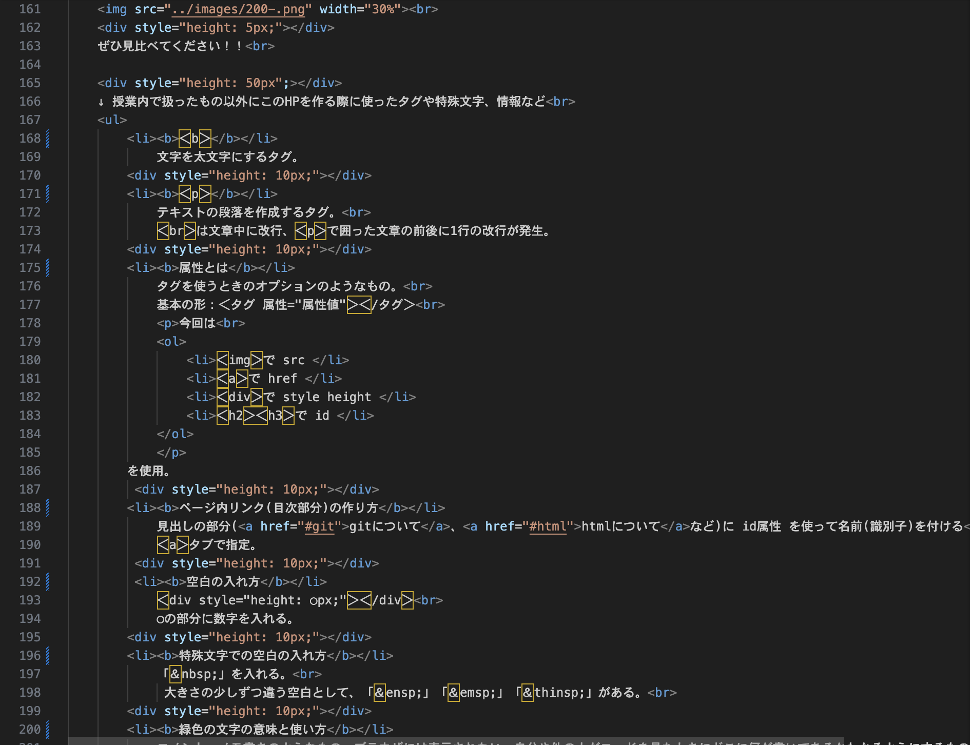 ↓ 授業内で扱ったもの以外にこのHPを作る際に使ったタグや特殊文字、情報など