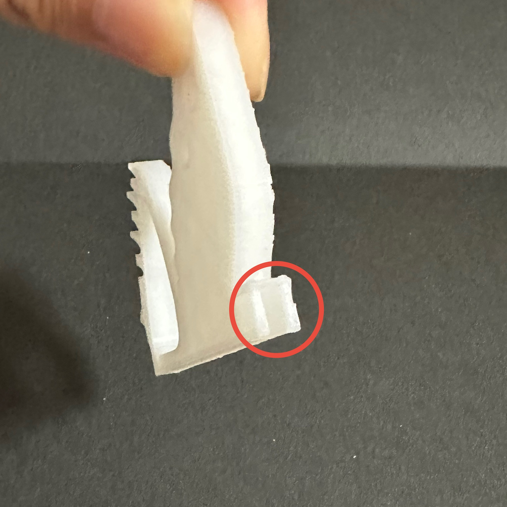 4. 刃先と本体のジョイント接続部分も一部うまく出力できていないことに気づく