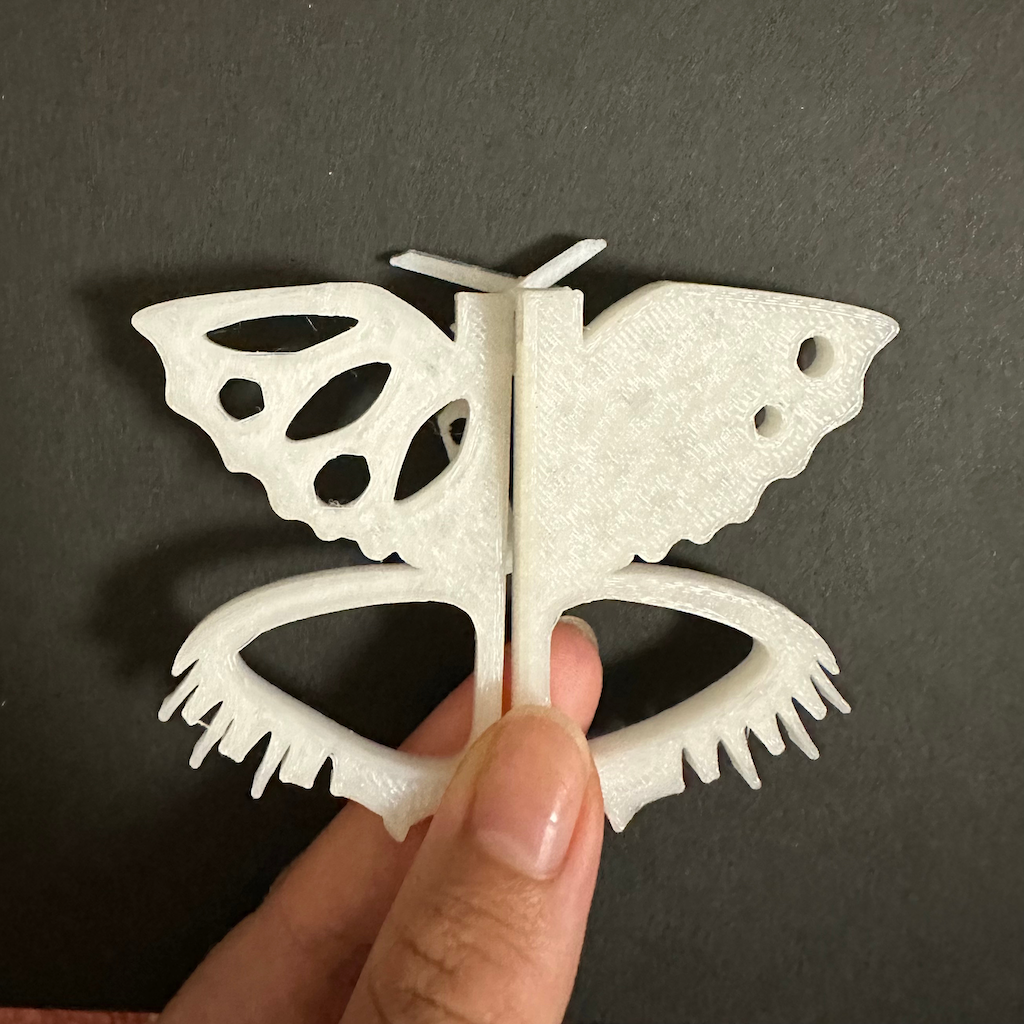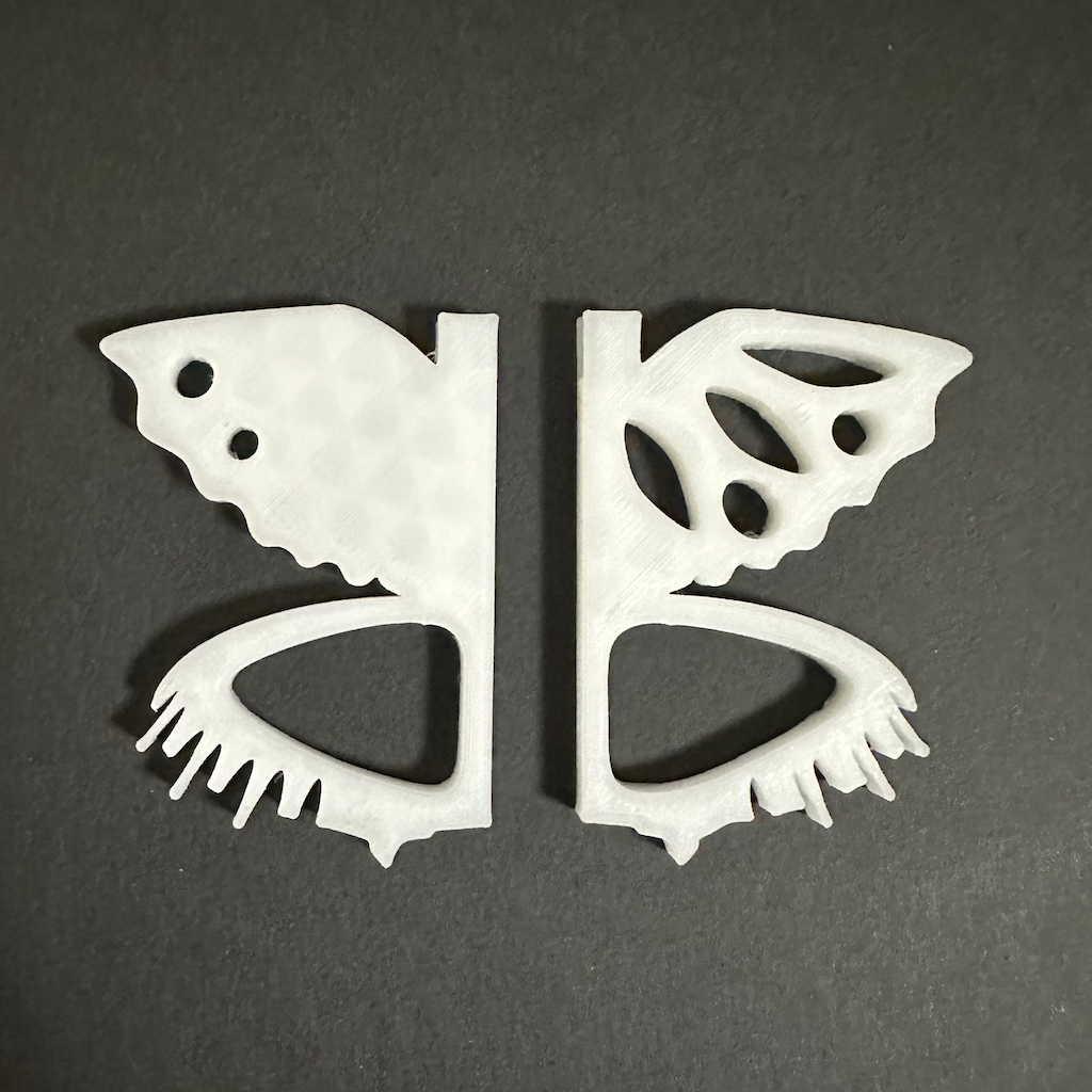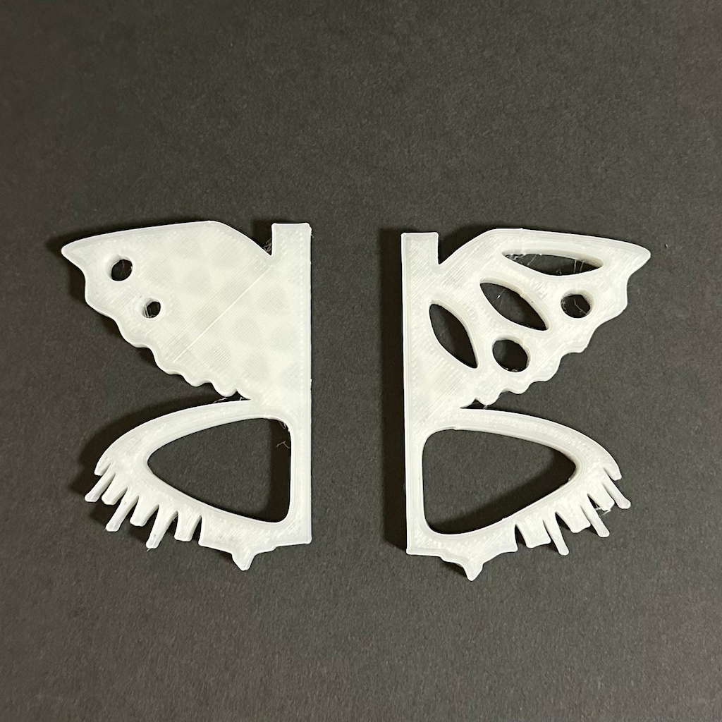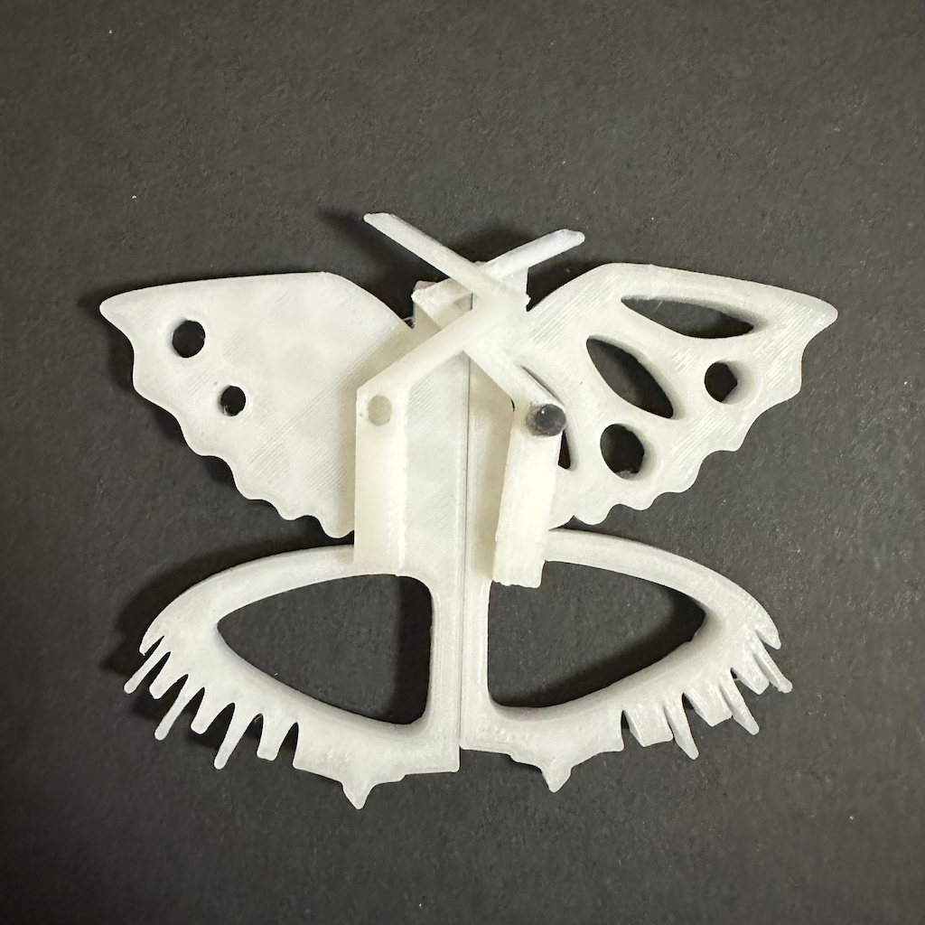スケッチ段階でやりたかったこととして、使わないときは刃先パーツを触覚に見立てて、本体パーツに取り付け、蝶のストラップとして使えるようにしたかった