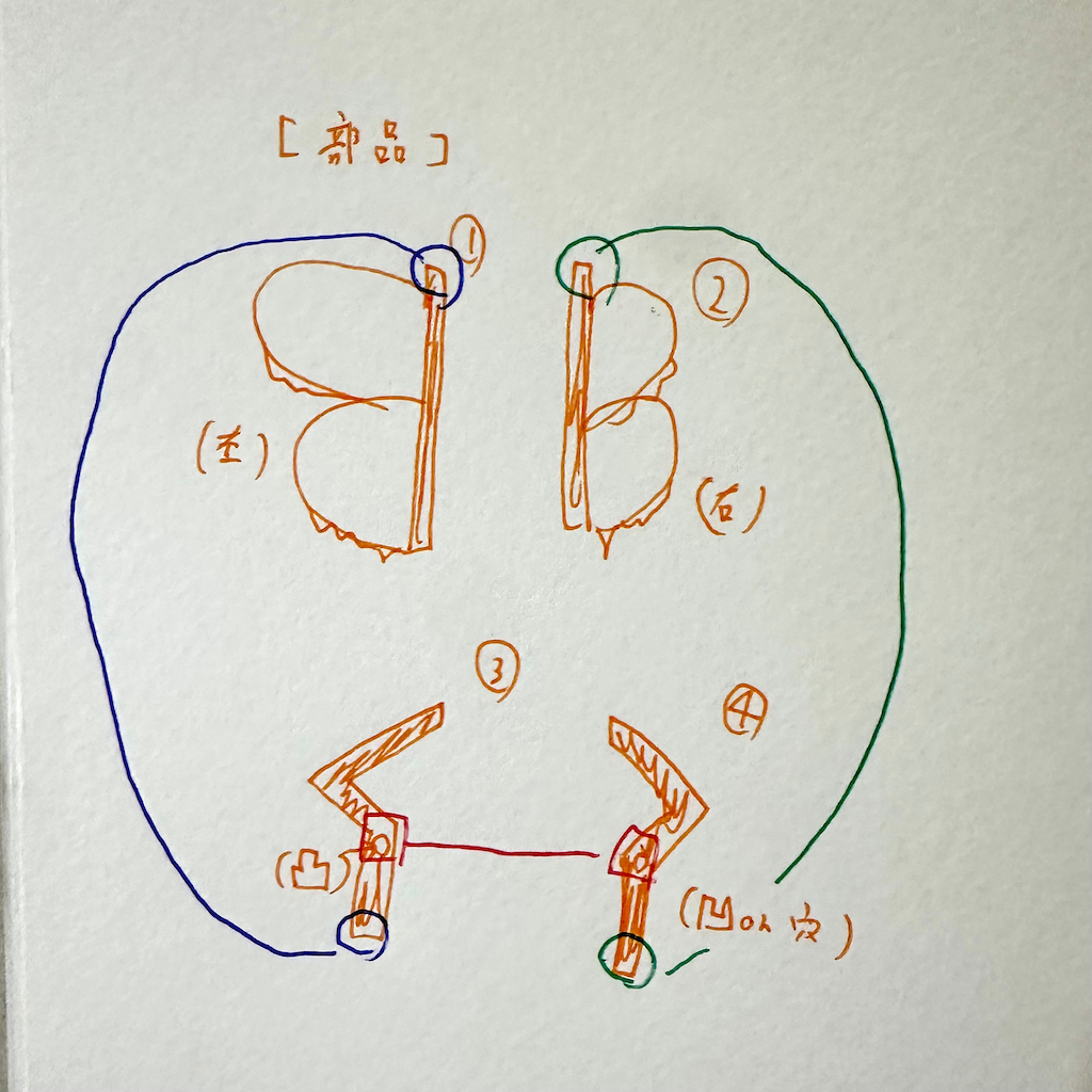 → 作成途中、はさみの形って蝶の羽みたいだな〜〜